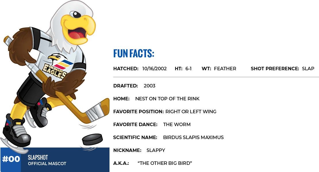 Weโre so excited to welcome Slapshot, the official mascot of the Colorado Eagles, to the Wellington playground on December 7th from 10am to 11am!!